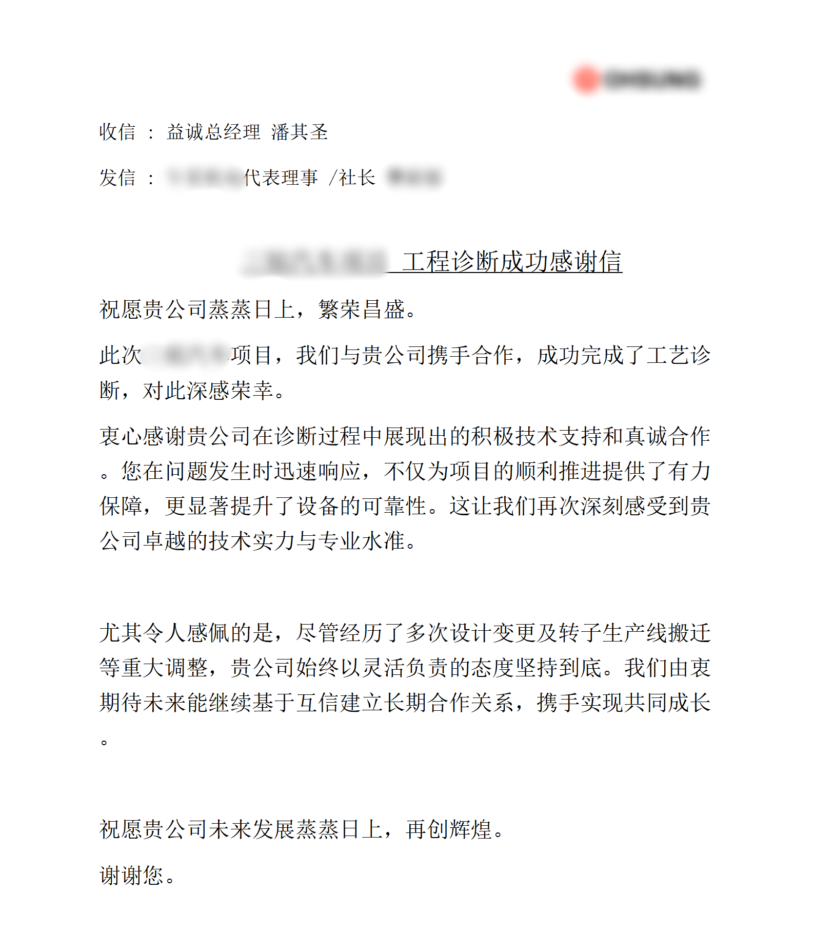 該客戶是韓國(guó)汽車配件與電子電器零部件制造領(lǐng)域的行業(yè)巨頭,業(yè)務(wù)遍布全球。作為多次合作的老客戶,此次獲得其官方認(rèn)可,不僅是對(duì)益誠(chéng)技術(shù)與服務(wù)的再次強(qiáng)力印證,更證明了我們具備持續(xù)服務(wù)全球高端制造網(wǎng)絡(luò)的能力,為雙方未來的深度合作注入了更強(qiáng)信心。
