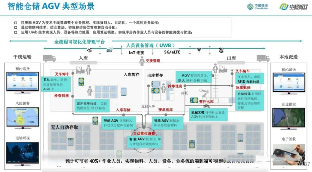 以智能AGV為技術主線貫通整個業(yè)務流程,實現(xiàn)貨到人自動化,一個流的業(yè)務運作;